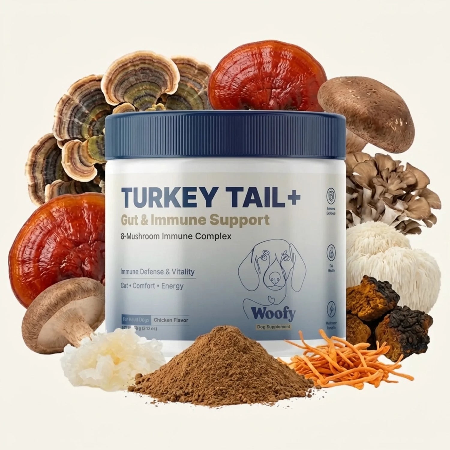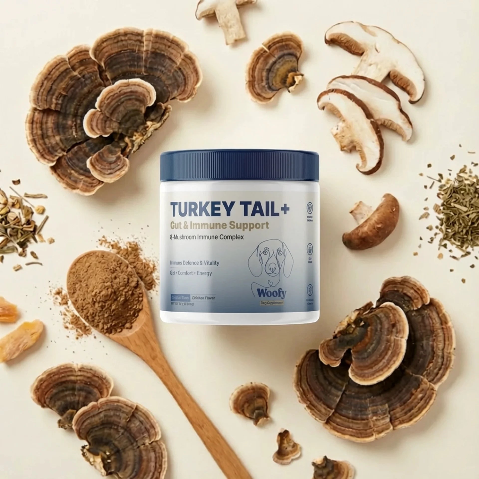 Your senior dog's immune system weakens with age. Turkey Tail+ rebuilds it from within — the only mushroom supplement with published canine research from Penn Vet.