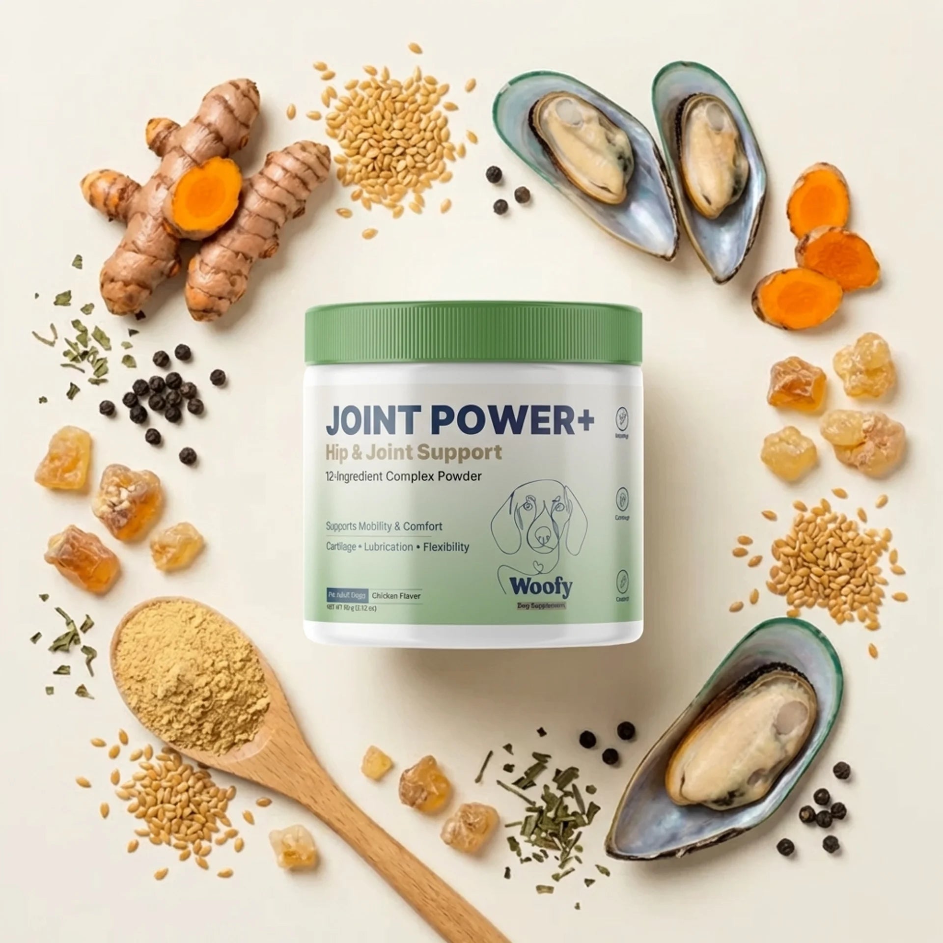 Glucosamine HCl · Chondroitin · MSM · Green-Lipped Mussel · Boswellia · Hyaluronic Acid · Turmeric